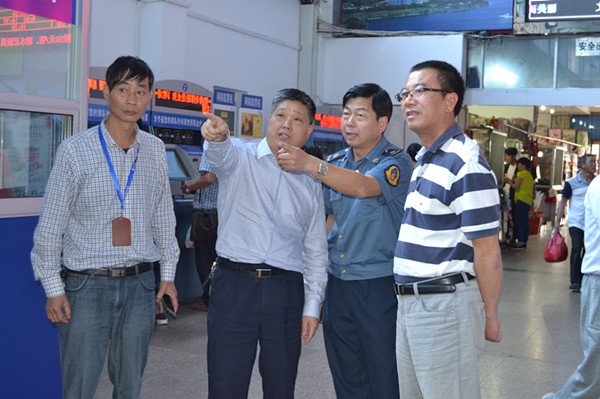 5月24日,省運管局副局長方文理、省交警總隊政委徐金華等相關(guān)領(lǐng)導(dǎo)到客運東站檢查指導(dǎo)反恐安保工作。一行人認(rèn)真查看了售票廳,行包安檢處、候車室、行李房等重點區(qū)域,詳細了解了客運東站對G20峰會反恐安保所采取的相關(guān)措施。方文理副局長對我站的反恐安保所做的工作表示滿意,對實施的站場封閉式管理給予了肯定,他強調(diào)車站是人流密集的場所,必須落實最嚴(yán)的安保措施,加強對重點部位、重點場所的監(jiān)管力度,做到萬無一失。要切實將安保工作做到更精細、更到位、更高效,打贏G20峰會安保攻堅戰(zhàn)。