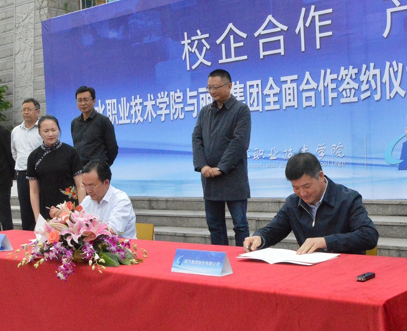 下午2時(shí)50分,麗汽集團(tuán)總經(jīng)理薛和有與麗水職業(yè)技術(shù)學(xué)院院長梁偉祥簽訂“校企合作”協(xié)議。