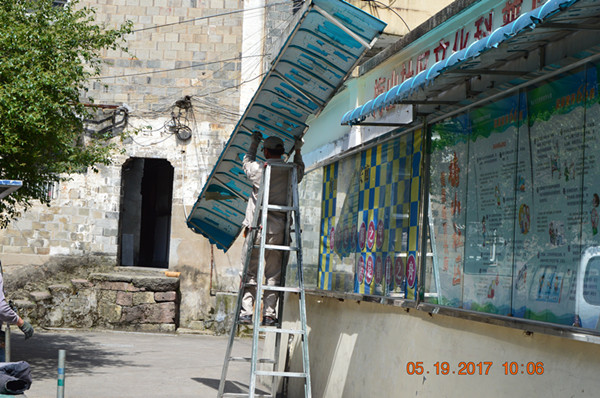 今天項(xiàng)目開(kāi)工,沒(méi)有儀式,一切以簡(jiǎn)潔經(jīng)濟(jì)為考量。工程負(fù)責(zé)人員進(jìn)駐項(xiàng)目部后,工人隨即就開(kāi)始粉刷外墻、拆除櫥窗等工作。