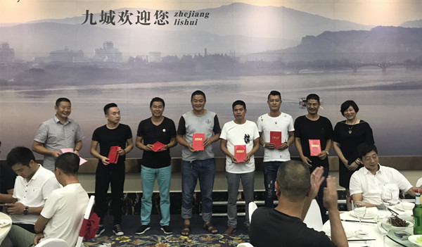 何總為獲“結業(yè)優(yōu)勝一等獎”的教練頒獎,分別為金 波、曾祖盈、傅建毅、沈祖清、劉俊標
