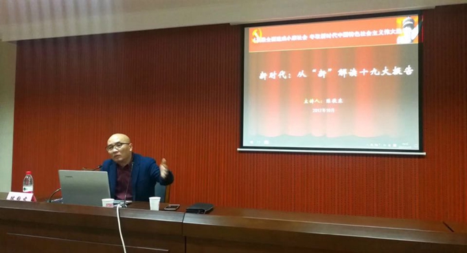 主講教授陳敬東為參會(huì)黨員干部獻(xiàn)上了一堂精彩的講座--《新時(shí)代:從“新”解讀十九大報(bào)告》。講座從“我們走到哪里”、“新時(shí)代新使命”、“新時(shí)代新引領(lǐng)”、“新時(shí)代新目標(biāo)”、“新時(shí)代新任務(wù)”五個(gè)方面對(duì)十九大報(bào)告進(jìn)行了新穎地解讀,對(duì)企業(yè)找準(zhǔn)新時(shí)代的自身新定位、以新思想引領(lǐng)企業(yè)未來(lái)新發(fā)展有著很好的啟迪作用和借鑒意義。