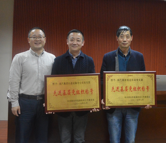 公司黨委書(shū)記葉茂與市直2016年度先進(jìn)基層黨組織長(zhǎng)運(yùn)分公司、客運(yùn)東站黨支部書(shū)記合影
