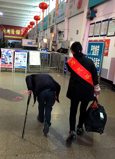 2月15日春運(yùn)還在繼續(xù),我們的溫情故事仍在上演。13:00,東站的服務(wù)臺還是有些忙碌,服務(wù)員鄭淑燕剛為一位旅客辦完行包寄存,突然聽到一聲“這里能買票嗎?”鄭淑燕隨即環(huán)顧四周,卻看不到一個人,“哪里發(fā)出的聲音?”正當(dāng)鄭淑燕納悶時(shí),服務(wù)臺上出現(xiàn)了一只手拿一張百元鈔票的手,鄭淑燕隨即探頭去看,一個彎著背,身材矮小的中年男子出現(xiàn)在鄭淑燕面前。在問清了該旅客要去的目的地后,鄭淑燕到售票窗幫他買好了車票,看到他還有一個包,鄭淑燕主動提出幫他提包,送他上車。旅客客氣地說:“不用了,我慢慢走可以拎得動的?!笨粗粤Φ貥幼?,鄭淑燕二話不說,從他手中接過包,跟在他旁邊慢慢地走,一直送他到檢票口。到了檢票口,鄭淑燕又交代檢票員檢票時(shí)幫助這名旅客先檢票上車。