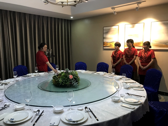 為了進(jìn)一步規(guī)范崗位技能操作,提升酒店員工業(yè)務(wù)素質(zhì)和服務(wù)水平,5月9日上午9:30分,九城宴會(huì)中心首次服務(wù)技能大賽拉開(kāi)帷幕,主題為“比技能、賽服務(wù)、展風(fēng)采、促發(fā)展”。參加本次技能比武的共有28人,分別為前廳服務(wù)組和后廚服務(wù)組。前廳服務(wù)組比賽場(chǎng)地設(shè)在酒店大廳,后廚服務(wù)組設(shè)在廚房。