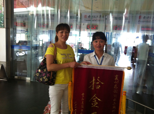 7月20日上午,客運(yùn)西站值班室迎來一位特殊的客人。她執(zhí)意要找到客運(yùn)西站行車員胡堅(jiān)芬,將一面寫著“拾金不昧”的錦旗和一個(gè)水果籃交到胡堅(jiān)芬手中,并再三表達(dá)了對(duì)胡堅(jiān)芬的謝意。