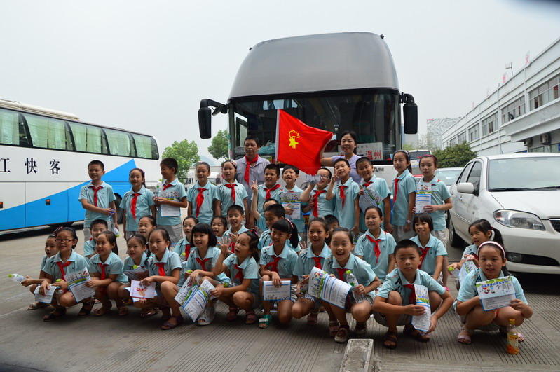 在客運(yùn)西站中廳里,面對(duì)模范司機(jī)吳斌的宣傳事跡圖片,小同學(xué)們不由的齊聲朗讀了起來,心里充滿了崇敬之情。在見到“最美浙江人”、“模范司機(jī)”吳斌后,小學(xué)生們更是高興的為吳斌叔叔戴上了紅領(lǐng)巾、獻(xiàn)上了美麗的鮮花。吳斌叔叔也親切的與小朋友們進(jìn)行了交談,并告訴他們出行一定要注意安全,要自覺遵守交通法規(guī)。