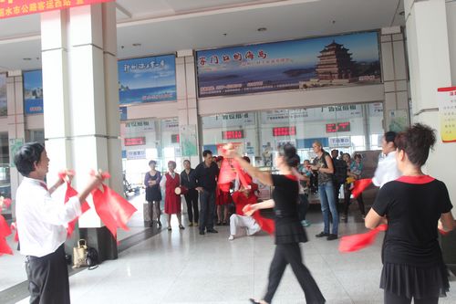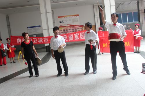 節(jié)目的內(nèi)容有腰鼓、三句半、快板等,宣傳隊員認(rèn)真的表演,引來不少乘車旅客駐足觀看。通過這樣的宣傳活動,將創(chuàng)衛(wèi)受益你我他這個理念傳遞給大家,同時營造人人關(guān)心創(chuàng)衛(wèi),支持創(chuàng)衛(wèi)的良好氛圍。
