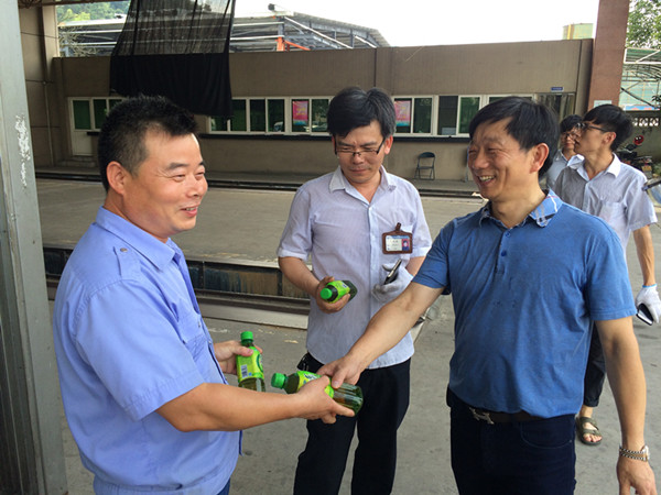6月24日下午,集團公司領(lǐng)導(dǎo)何赤詮、廖翊堯和呂麗君,分三組帶領(lǐng)相關(guān)人員,頂著高溫炎熱到下屬各單位看望慰問在高溫中奮戰(zhàn)的一線員工,給他們送上清涼飲品和暑天清涼的問候、關(guān)愛。叮囑大家在高溫天要注意身體,注意安全。