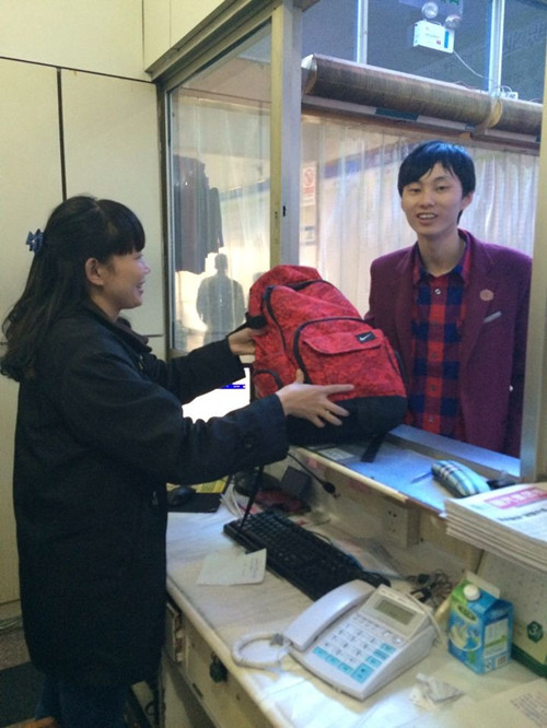 “您好,這里是客運(yùn)東站服務(wù)處,您落在車上的背包我們已經(jīng)幫您找到了,請(qǐng)您有空的時(shí)候過(guò)來(lái)取。”服務(wù) 組組員李一斌平靜中帶點(diǎn)興奮地說(shuō)。