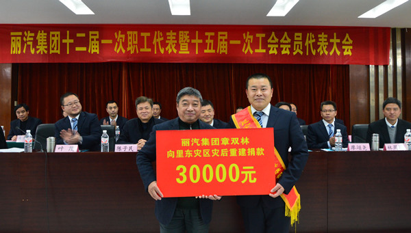 12月25日下午,麗汽集團召開十二屆一次職工代表暨十五屆一次工會會員代表大會,在大會正式議程開始前,章雙林決定,捐贈出剛剛獲得的五萬元獎金,其中3萬元捐贈給里東災(zāi)民幫助他們?yōu)暮笾亟?,剩余?萬元獎金捐給身邊急需救助的人員。章雙林在發(fā)言中說:“我只是一個平平常常的客車司機,只是履行了一個司機的責(zé)任。我做了一件小事,公司和社會卻給了我這么高的榮譽,給了我這么多的贊美和鼓勵,更加堅定了我今后努力做好旅客服務(wù)工作的信心和決心。麗水是我生長的地方,我對這里充滿了感情。麗汽集團是我成長的地方,我對這里充滿了感激。為回報大家,現(xiàn)在我決定,將其中3萬元獎金,捐給里東災(zāi)民,幫助他們?yōu)暮笾亟?,剩余?萬元,我也將陸續(xù)捐出來,幫助身邊急需救助的人員。希望里東災(zāi)民早日重建家園,希望身邊的人員都健康平安?!?br/> 隨后,麗水市蓮都區(qū)慈善總會會長朱祖新來到會議現(xiàn)場接受了章雙林的捐款。