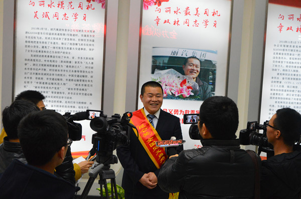 朱祖新說:“章雙林受到全國(層面)的表彰,他的事跡非常感人。特別是他領(lǐng)到獎金后,首先想到的是要捐贈給蓮都區(qū)雅溪鎮(zhèn)里東村的困難群眾,這種慈心和善舉非常美好,確實值得大家學(xué)習(xí)?!?br/> 麗水市總工會黨組書記,常務(wù)副主席陳子民也發(fā)表了熱情洋溢的講話。陳子民說:“麗汽集團一貫實施的強化員工素質(zhì)提升、民主管理、員工關(guān)愛、創(chuàng)新創(chuàng)效和黨群共建“五大工程”,有效培育了一支一流的員工隊伍和積極向上的企業(yè)文化。在麗汽集團的最美創(chuàng)建活動中,先后涌現(xiàn)一大批先進模范人物,有“最美司機”吳斌、“全國見義勇為英雄司機”章雙林,還有被市委書記王永康專門批示“向明霞同志表示敬意”的最美辦公室主任徐明霞等杰出代表。就在剛才,全國見義勇為英雄司機章雙林赴京表彰載譽歸來,馬上就向里東災(zāi)區(qū)捐出“全國見義勇為英雄司機”的獎金,讓我深受感動。這些先進模范人物能在麗汽集團不斷涌現(xiàn),決非是偶然。它一方面是因為麗汽集團有著深厚的企業(yè)傳統(tǒng)文化,是一個充滿正能量的優(yōu)秀企業(yè);另一方面更是麗汽集團長期注重企業(yè)文化培育的結(jié)果?!?br/> 在章雙林發(fā)言之前,麗汽集團總經(jīng)理薛和有向大家報告了章雙林獲得“全國見義勇為英雄司機”和“中國好司機”并北京人民大會堂接受表彰的情況。麗汽集團黨委書記、董事長葉茂代表集團公司全體干部員工向章雙林獻(xiàn)花,歡迎英雄載譽歸來!